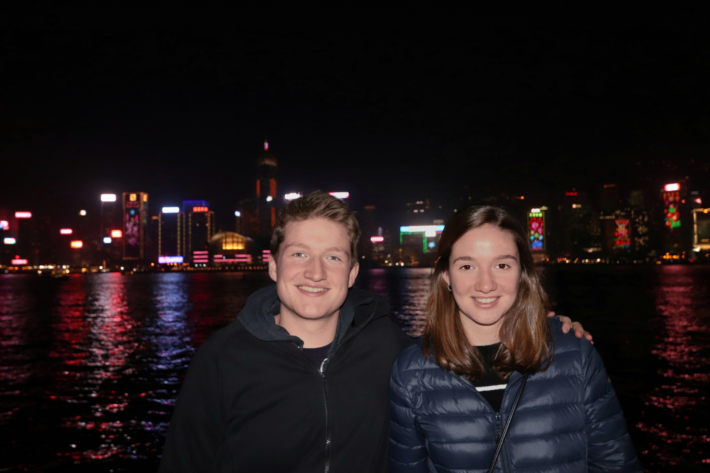 In the evening we went to Tsi Sha Tsui 尖沙咀 to take the obligatory touristic picture. I’d like to share one of the rare pictures with you, where both my brother and me both smile and have the eyes open. ;-)